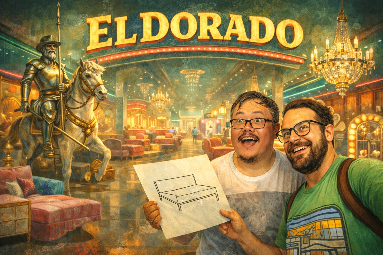 But unlike IKEA, where the Swedes give you a guided path of carefully manicured showrooms, El Dorado offers the furnishings version of a Las Vegas buffet – not the fancy buffet with the $125 brunches, but the buffet where an old man has a plate of ribs in front of him while he plays video poker, drags on his cigarette, and breathes from his oxygen tank.
