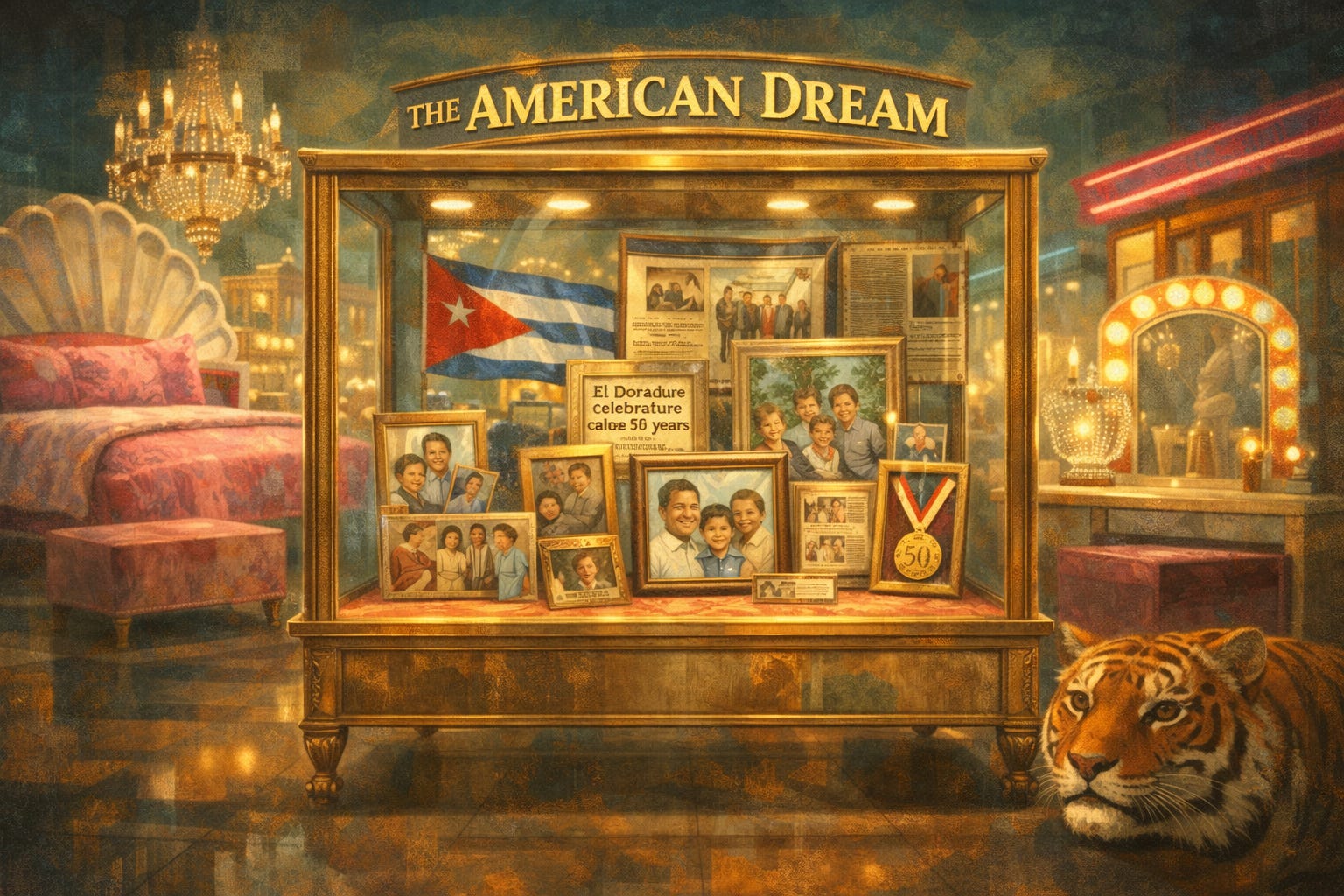 The American dream, where you can flee a country like Cuba, put in sweat equity, and succeed in a new country, just like the owners of the store did. And once you receive the fruits of your labor, you can provide for your family, send money back home, and buy an ottoman with the face of a tiger on it with the leftovers. Owning a family furniture store the size of a small British village is the ultimate act of defiance to a Communist government.