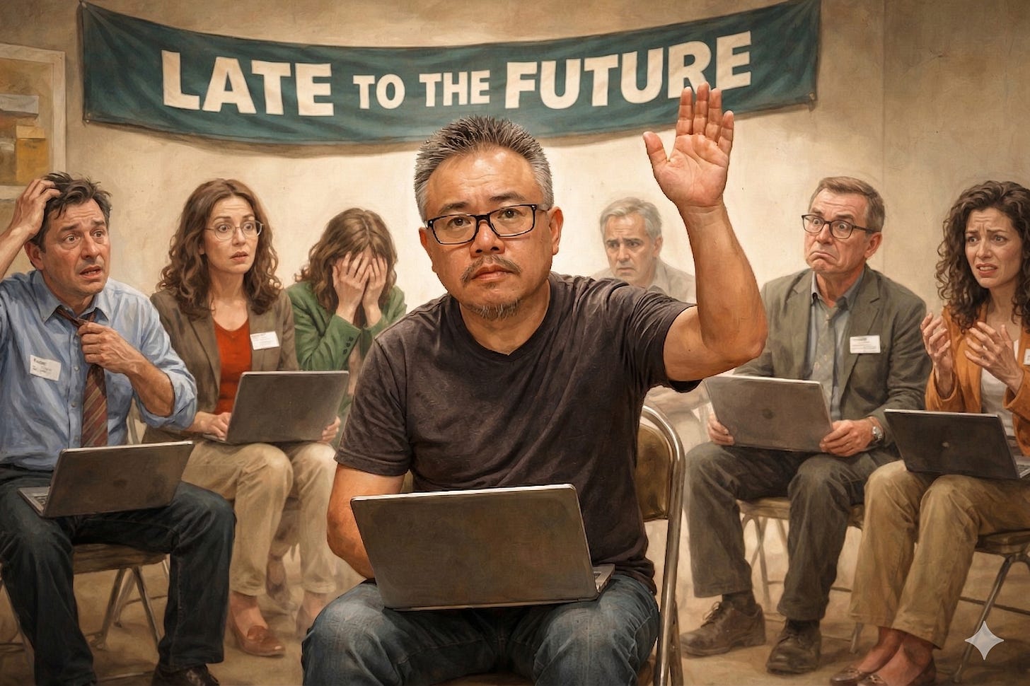 It’s called Late to the Future. It’s for people who are smart enough to know exactly how behind they are — experienced, capable, quietly terrified, nodding in meetings for eighteen months. Maybe not beginners, but not experts either. Just people catching up in public, which is uncomfortable and also, I’d argue, the only honest way to do it.