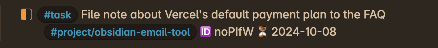 Because what my ADHD brain really needed was even more Markdown syntax to forget. A simple checkbox (- [ ] Remember the milk!) wasn’t enough—this Obsidian Tasks plugin adds so many emojis and identifiers that picking up dry cleaning starts to look like a line of COBOL.