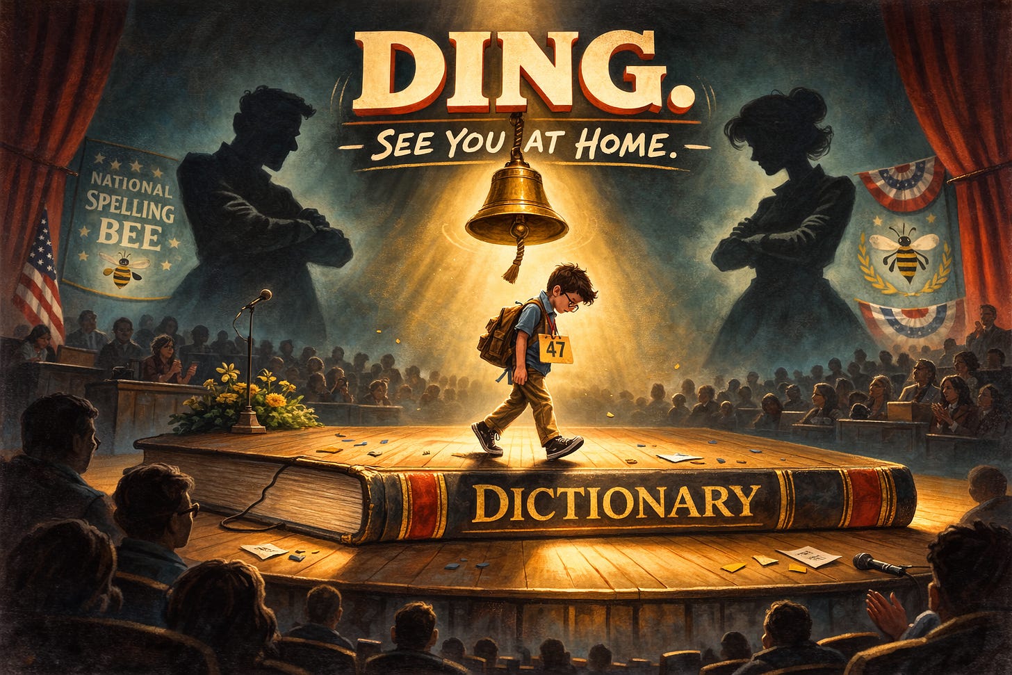 I would have live-blogged this - I mean, it’s two hours of live spelling, and thus, instant blogging zaniness, but for the most part, watching the majority of the spelling bee consisted of the following: Some random Asian kid is given the task to spell “bouleuterion.” Kid writes with his finger on the back of the piece of cardboard with his name on it, while an ESPN commentator reminds us that he’s not REALLY writing the word out, it’s just his finger. After we watch him do this for two minutes, the bell rings, meaning he’s spelled the word wrong, and, defeated, he walks to his parents and sits with them on stage. Neither parent consoles their child nor shows support.