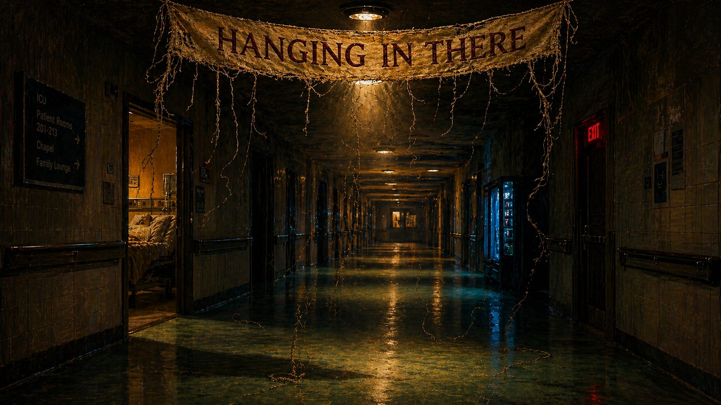 Your father is dying. You know this because the doctor said so, because the numbers said so, because your mother keeps asking about the black mark on his face like if she figures that out everything else will make sense.